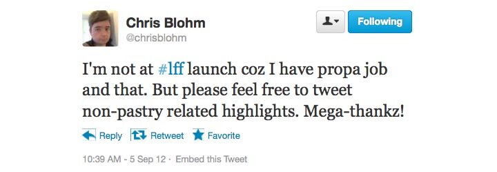 The London Film Festival this year was when this whole thing became silly, with lots of tweets (and a large percentage of blog coverage) of the festival's launch devoted to discussing the croissants on offer rather than the movies.