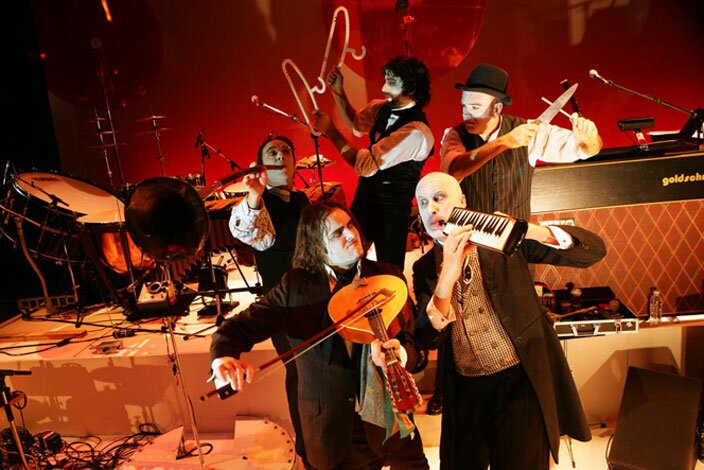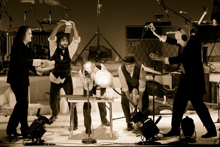 Throughout the concert, signature Spaghetti Western themes popped up, occasionally performed using a balloon pump and a trumpet. One brilliant highlight saw Death Rides a Horse chanted with make-shift subtitles scribbled on giant bits of paper. In between the pieces, the group stood around reliving Clint Eastwood scenes led by a cackling storyteller, while the others jabbered nonsense in the background. The daft sense of chaos offered a nice contrast to the intensity of Morricone's epic scores, which still had the impact of a full orchestra despite the comparatively thin texture. Lurching from laugh-out-loud pranks to delicate arrangements,. the spontaneous set could have been distracting but the orchestra worked hard kept the compositions centre stage. A quiet hum-along of A Professional Gun was a stark reminder of the importance of simplicity. Even the surprise of seeing a theremin playing an actual tune only emphasised the subtlety of Edda Dell'Orso's original vocals from Once Upon a Time in the West.
